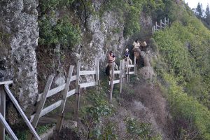 患者たちは船で運ばれ、カラウパパの海岸に下ろされました。感染を怖れた船員は、彼らを小舟に乗せ替えて陸まで運ぶのを嫌がり、甲板から飛びこんで陸まで泳げとか、設置してあったロープをつたって上陸しろと命ずることもありました。家族や社会から強制隔離されたあげく、汚物のような扱いを受けたのです。症状が進み、体の自由が利かない患者のなかには溺れかけた人もいて、別の患者が手助けしたこともありました。