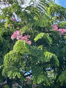 いろいろな情報を聞きながら、あちらこちらに行ってみました。昔はフォスター植物園のパーキングの入り口付近のちかくにはあったと思っていたのですが、見つからなかったので、カハラエリアのゴルフコースの近くまで行ってみました。そこでようやくピンクシャワーを見つけることができました。シャワーツリーは10mくらいもある高木なので、花の写真を撮るのがなかなか難しいですね。探している植物が見つかるのは本当に嬉しいです。皆様も真夏のハワイで探してみてください。来年の夏にはかならずハワイにいらしてくださいね。