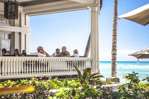 (5)は、背後にカピオラニ公園が広がり、クヒオ・ビーチからも少し離れているので静かなイメージがあるかもしれませんが、いつも音楽が鳴り渡っていることと、夜はビーチでイベントが開かれるので、意外に1日賑やかです。